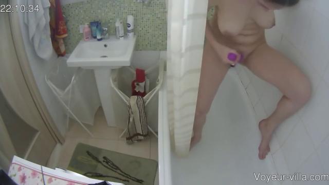 Захотев кончить, грудастая студентка принялась дрочить пизду в ванной